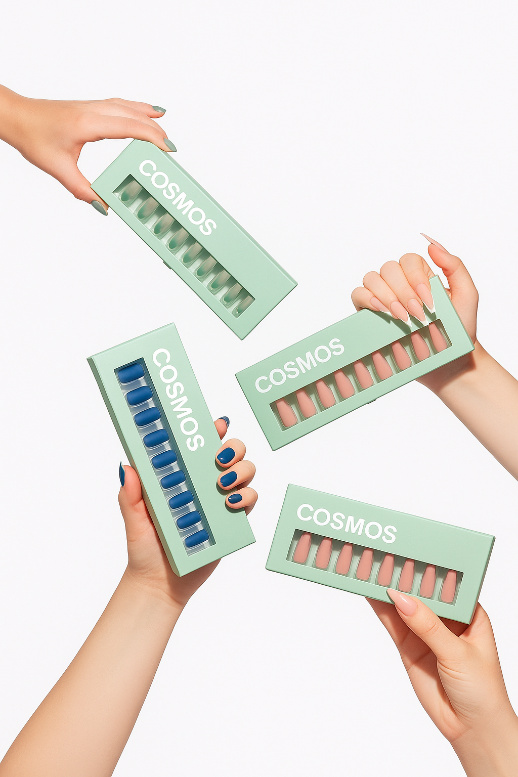 Elke set bevat 24 nagels in verschillende maten, non-toxic lijm, plakpads, een nagelvijl en een cuticle stick — alles wat je nodig hebt voor salonresultaat thuis.