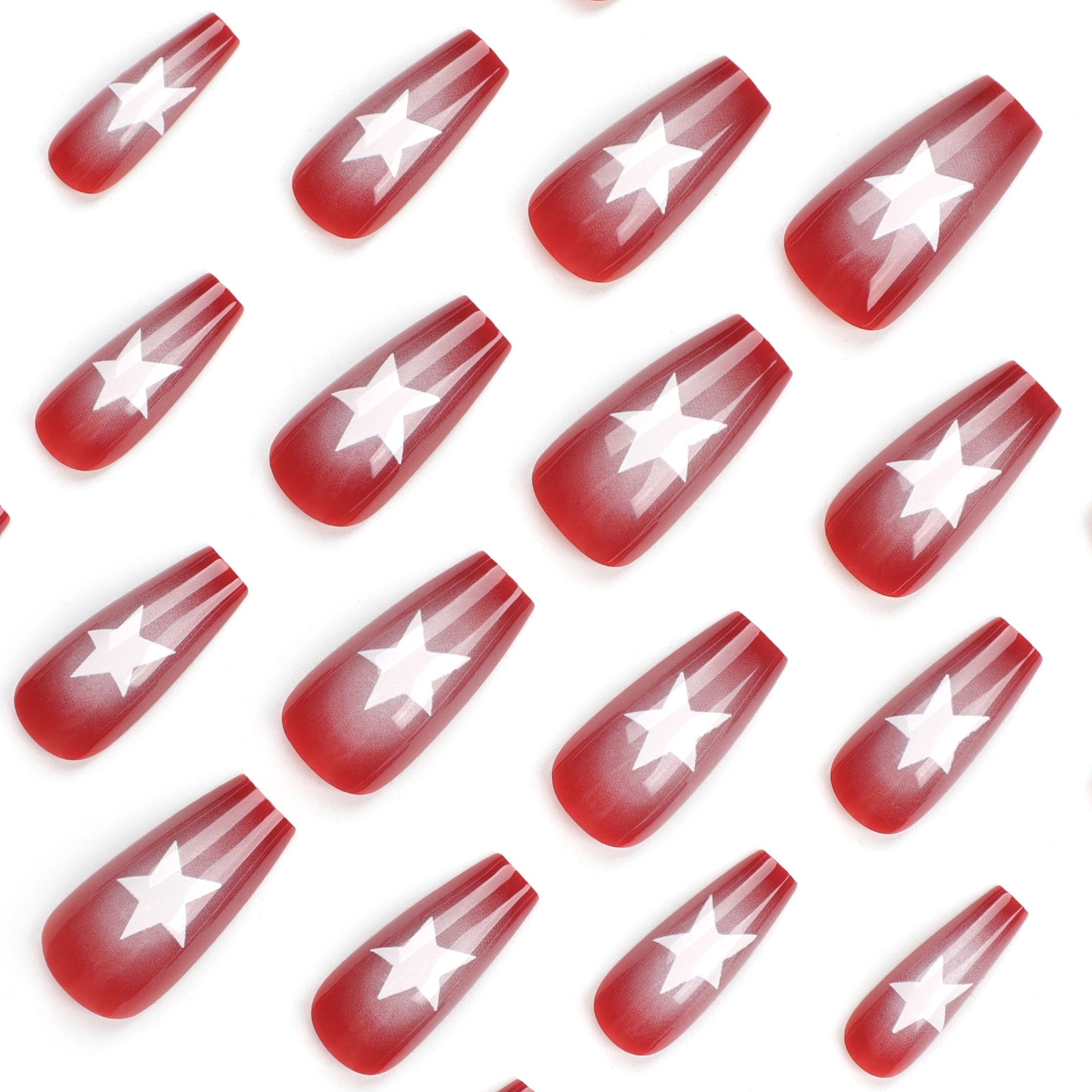 Elke set bevat 24 nagels in verschillende maten, non-toxic lijm, plakpads, een nagelvijl en een cuticle stick — alles wat je nodig hebt voor salonresultaat thuis.