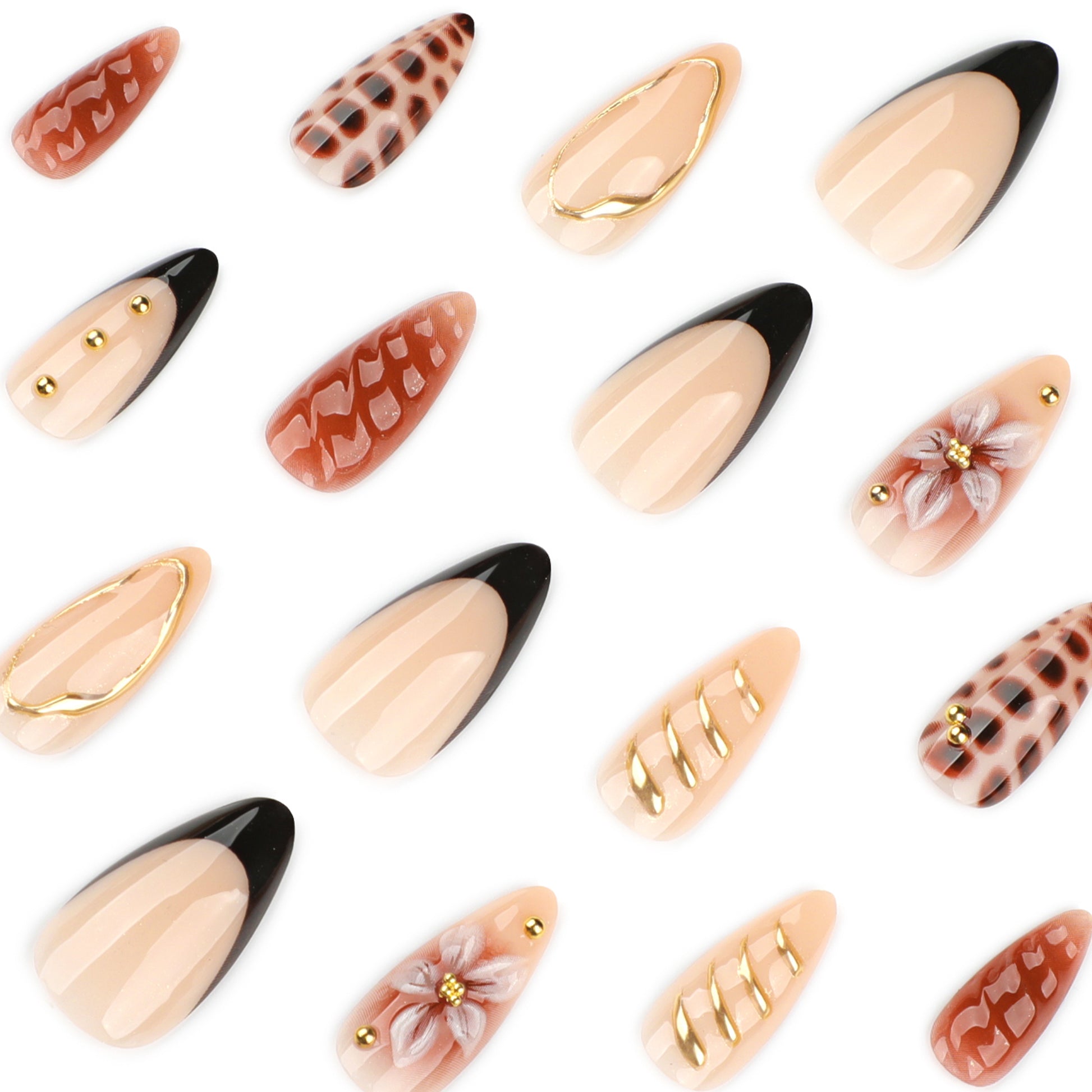 Elke set bevat 24 nagels in verschillende maten, non-toxic lijm, plakpads, een nagelvijl en een cuticle stick — alles wat je nodig hebt voor salonresultaat thuis.
