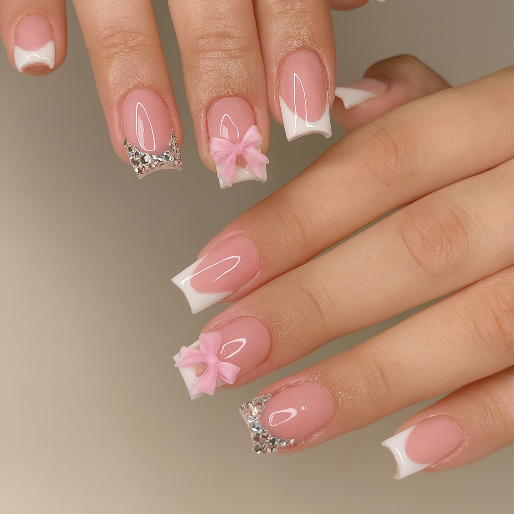 Elke set bevat 24 nagels in verschillende maten, non-toxic lijm, plakpads, een nagelvijl en een cuticle stick — alles wat je nodig hebt voor salonresultaat thuis.