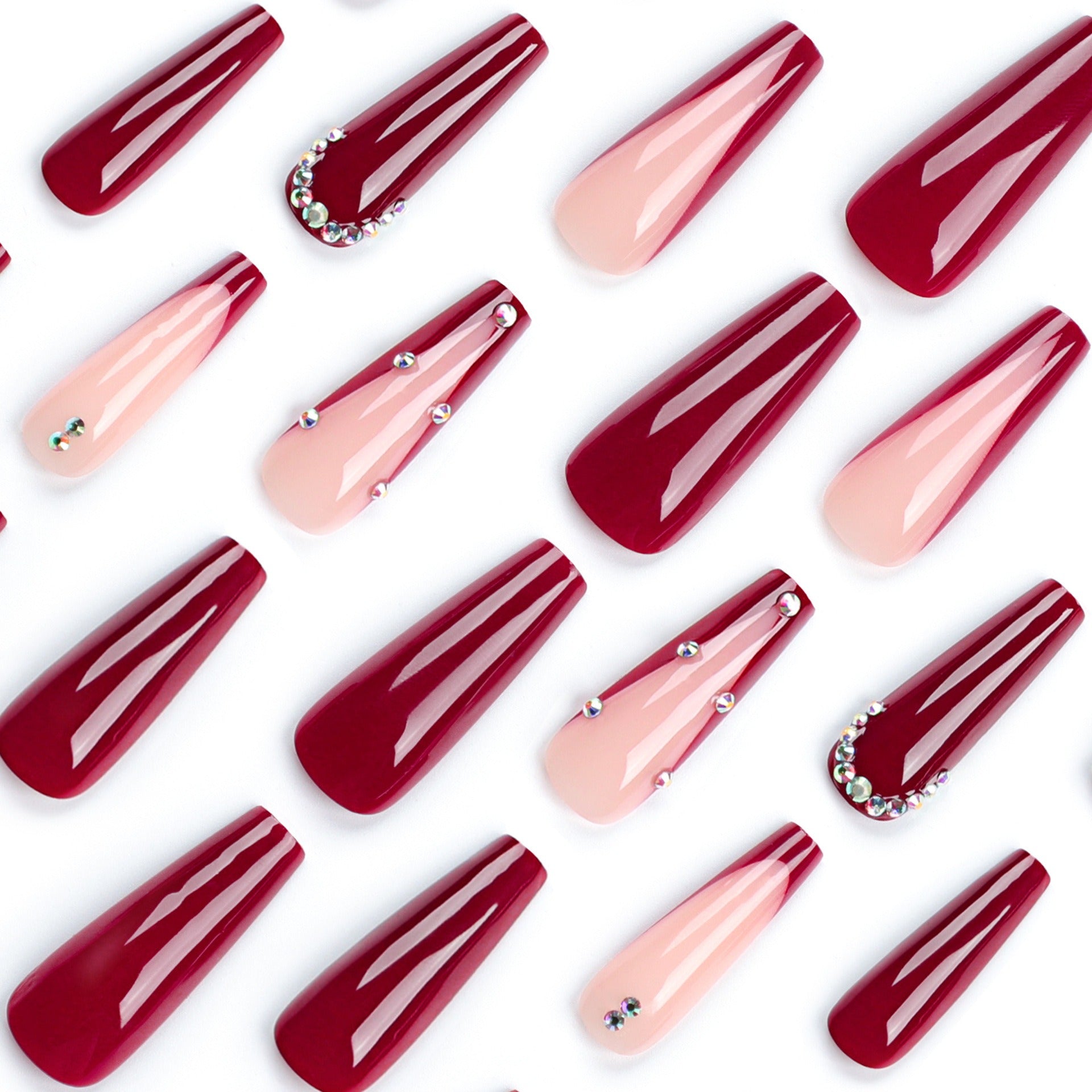 Elke set bevat 24 nagels in verschillende maten, non-toxic lijm, plakpads, een nagelvijl en een cuticle stick — alles wat je nodig hebt voor salonresultaat thuis.