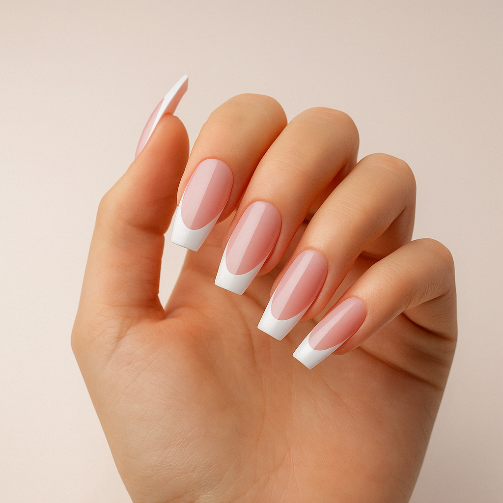 Elke set bevat 24 nagels in verschillende maten, non-toxic lijm, plakpads, een nagelvijl en een cuticle stick — alles wat je nodig hebt voor salonresultaat thuis.