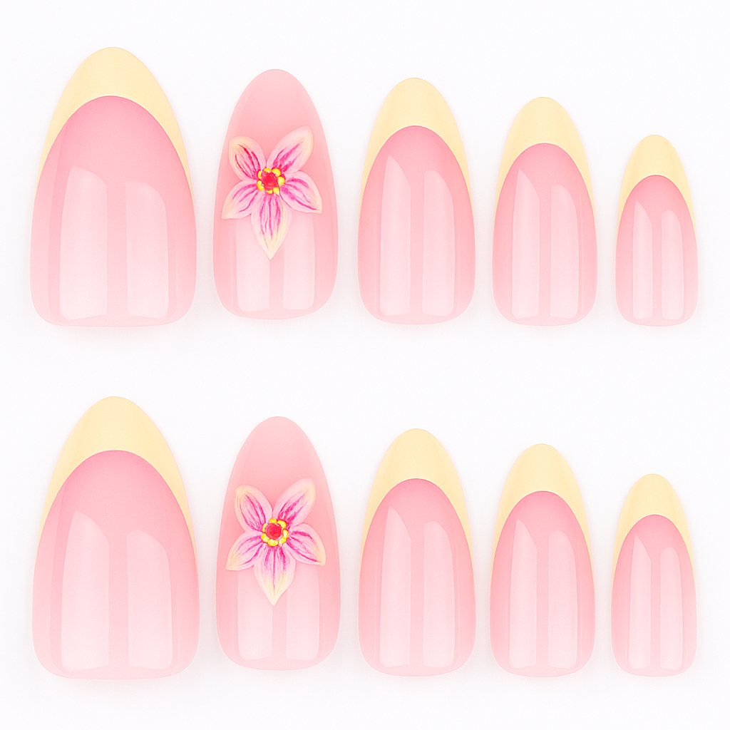 Elke set bevat 24 nagels in verschillende maten, non-toxic lijm, plakpads, een nagelvijl en een cuticle stick — alles wat je nodig hebt voor salonresultaat thuis.