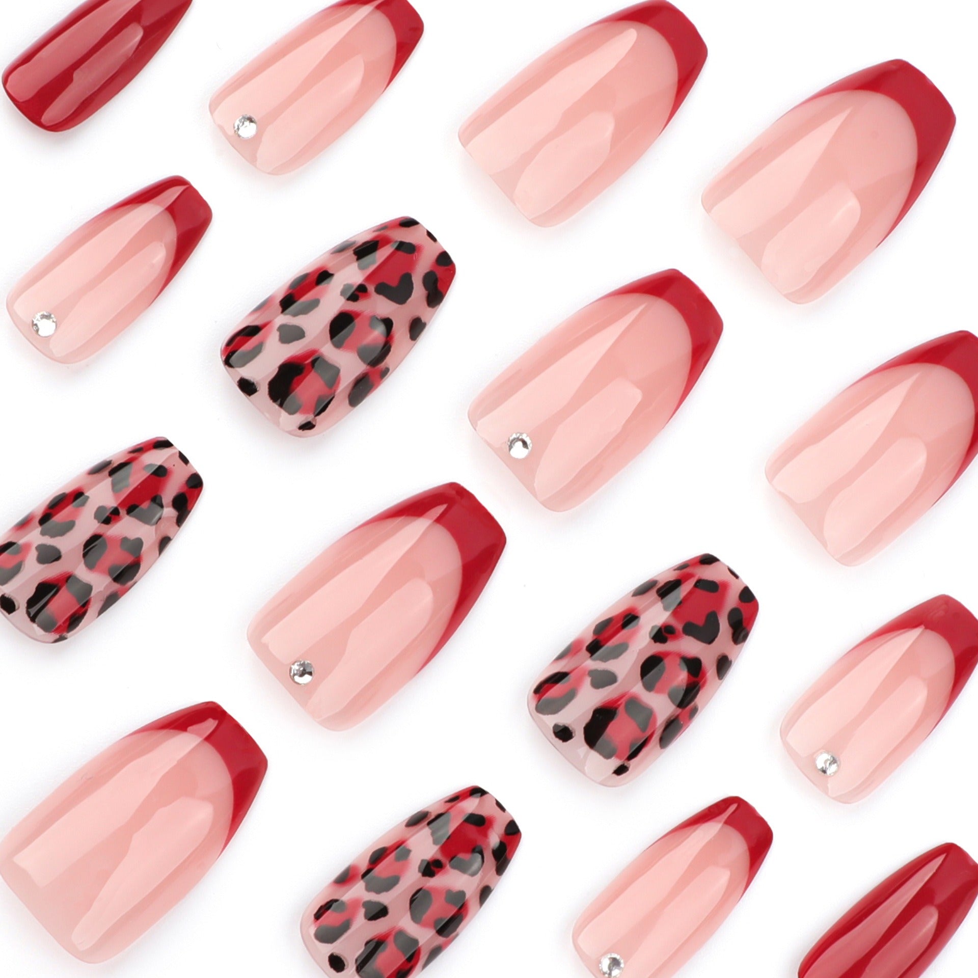 Elke set bevat 24 nagels in verschillende maten, non-toxic lijm, plakpads, een nagelvijl en een cuticle stick — alles wat je nodig hebt voor salonresultaat thuis.