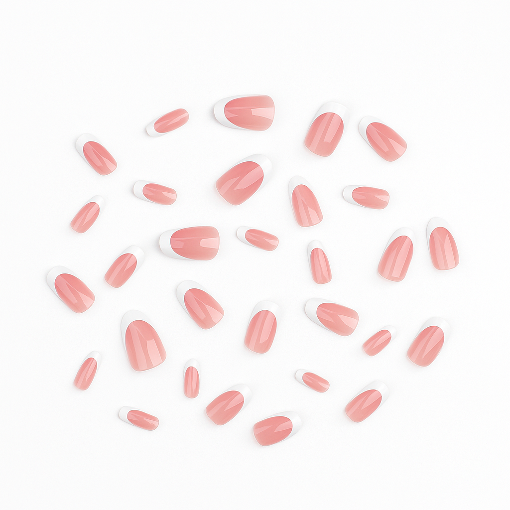 Elke set bevat 24 nagels in verschillende maten, non-toxic lijm, plakpads, een nagelvijl en een cuticle stick — alles wat je nodig hebt voor salonresultaat thuis.