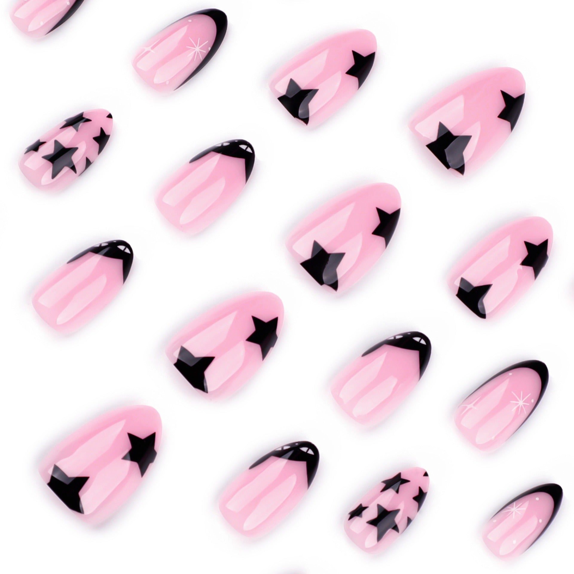 Elke set bevat 24 nagels in verschillende maten, non-toxic lijm, plakpads, een nagelvijl en een cuticle stick — alles wat je nodig hebt voor salonresultaat thuis.