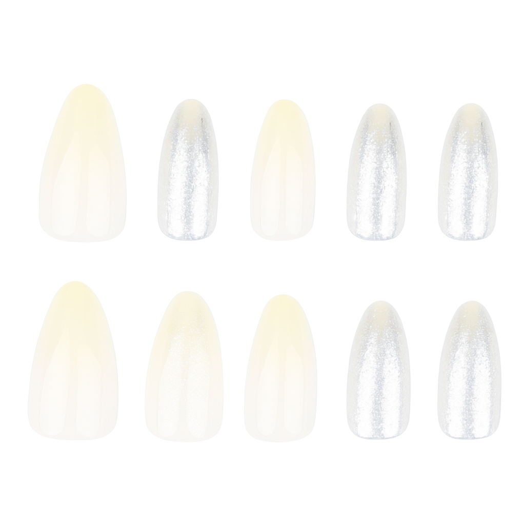 Elke set bevat 24 nagels in verschillende maten, non-toxic lijm, plakpads, een nagelvijl en een cuticle stick — alles wat je nodig hebt voor salonresultaat thuis.